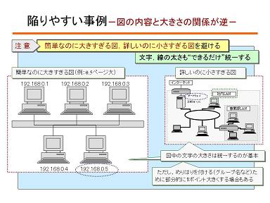「図の内容と大きさの関係」を調整するとともに文字の大きさあるいは線の太さが過度に不統一にならないように調整する必要があります。簡単なのに大きい図と詳細なのに小さい図が混在すると不体裁になりるため、いずれかあるいは双方の縮尺を調整する必要があります。