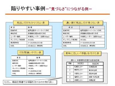陥りやすい事例−見出し行と項目行の位置付けが不明確−