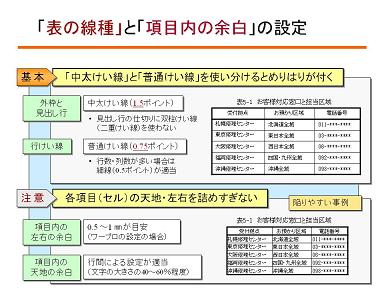 表の線種と項目内の余白